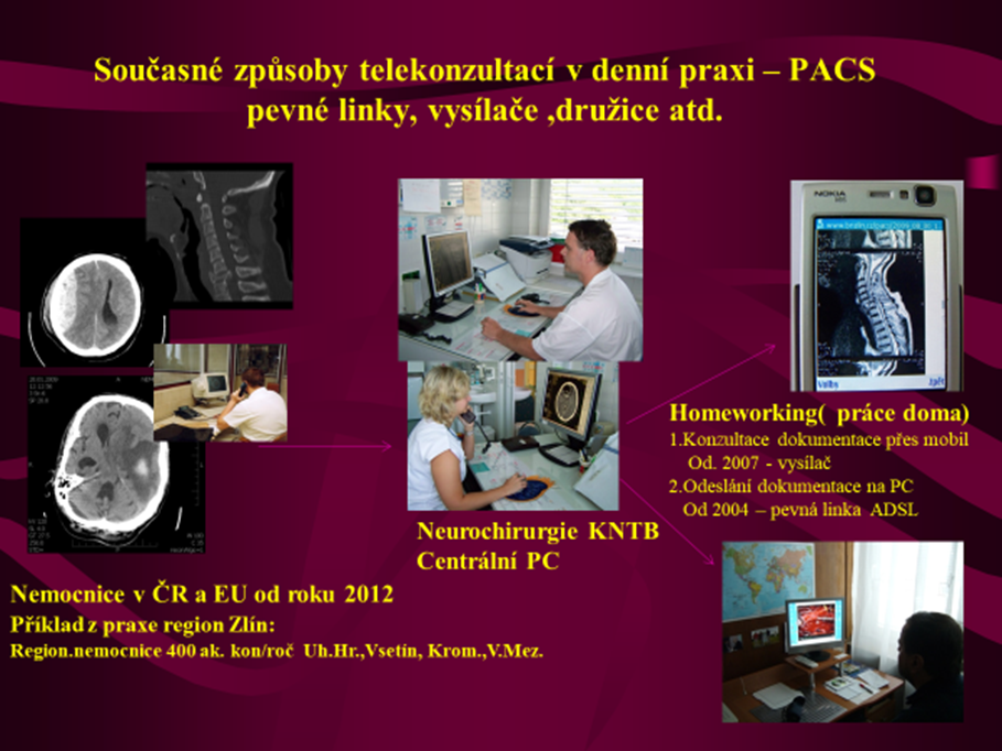 Na Ostravsku vznikla koncem 90. let telekonzultační síť pro neurotraumatologii ve spolupráci s telekomunikačním partnerem. Systém byl klinicky řízený, nikoli čistě technologický. Hlavním autorem a odborným garantem řešení byl neurochirurg FN Ostrava a poté KNTB Zlín Doc MUDr. Michal Filip Ph. D, který vedl návrh klinických scénářů, algoritmů rozhodování a praktické implementace.